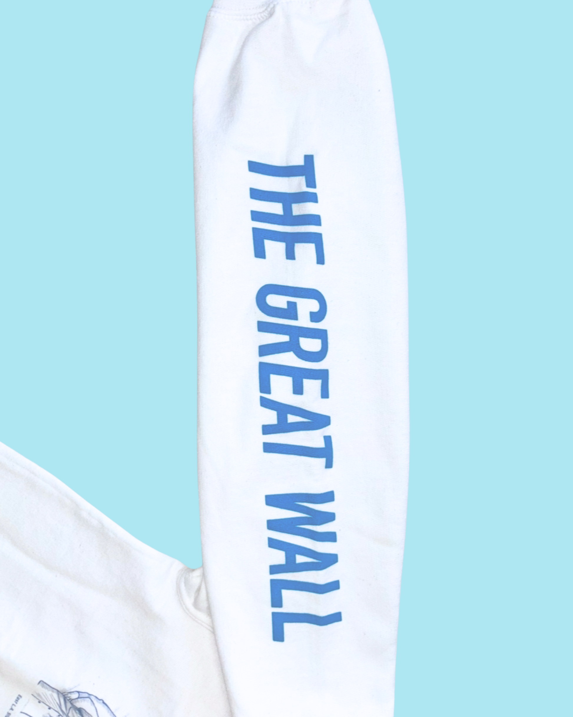 A crewneck sweatshirt featuring the East L.A. Student Walkouts section from the Great Wall of Los Angeles 1960s expansion, created by artist Judith F. Baca and the Social and Public Art Resource Center (SPARC).